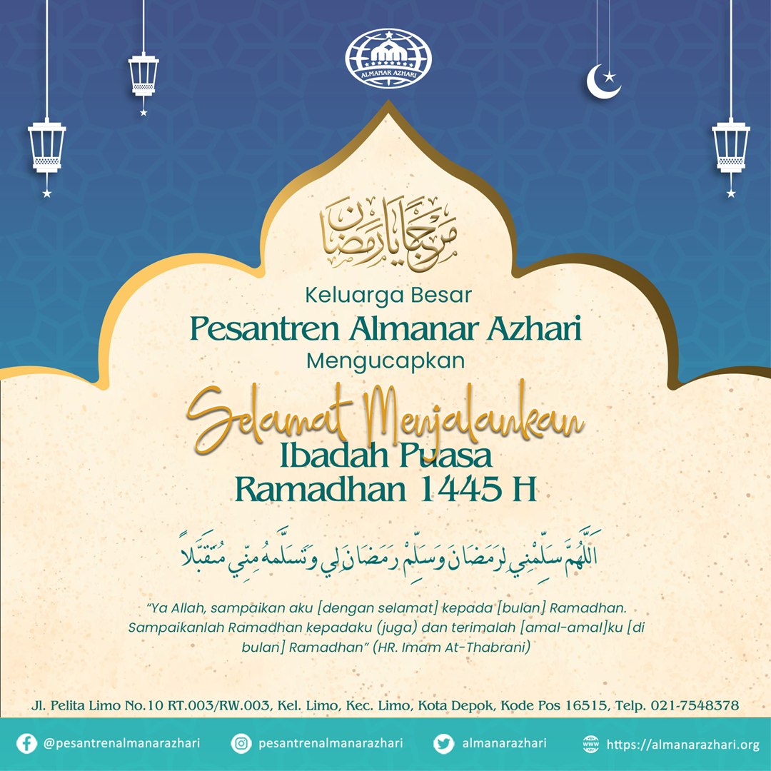 Read MoreSegenap Keluarga Besar Pesantren Almanar Azhari mengucapkan Selamat Menjalankan Ibadah Puasa Ramadhan 1445 H, semoga kita semua dapat menjalankan ibadah puasa dengan khusyu dan mendapatkan pangkat muttaqiin